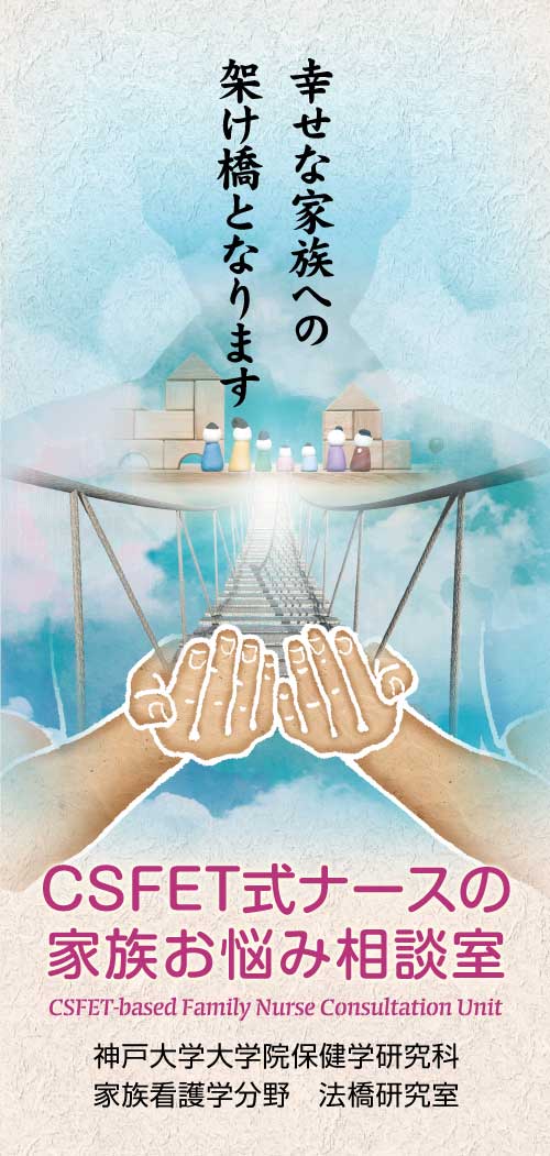 “CSFET式ナースの家族お悩み相談室”の案内リーフレット(A4サイズ、巻三つ折)は、 さまざまな場所に設置しておりますので、ご自由にお持ち帰りいただけます。 下の画像をクリック(タップ)すると、pdfファイルでご覧いただけます。